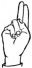 На ћирилици написано ДАНИЈЕЛ ВУЈЧЕТИЋ састоји се из 15 слова [?]. Исписано ћириличном једноручном азбуком за глувонеме: